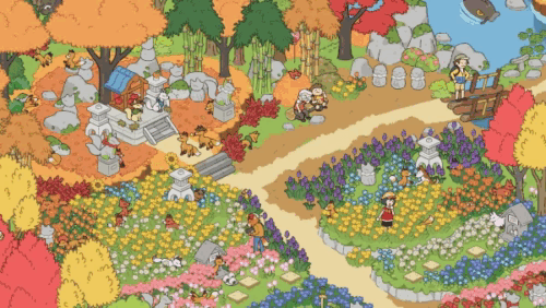 Nachdem du eine Aufgabe abgeschlossen hast, kehrst du zum Park rund um den Schrein zurück und entscheidest, wie es weitergeht. Dort kannst du verschiedene Nebenaktivitäten entdecken, etwa Gespräche mit den Figuren führen, die rund um den Schrein unterwegs sind. Dadurch wirkt die Welt lebendig und vermittelt das Gefühl, Teil eines größeren Geschehens zu sein. Im Laufe der Geschichte eröffnet eine wichtige Figur sogar einen Laden neben dem Schrein und richtet dort eure Firmenzentrale ein, die du selbst benennen kannst. Sie besteht aus einem Büro und einem privaten Raum für Ducky, die du mit Möbeln aus dem Laden nach deinen Vorstellungen einrichten kannst. Das verleiht dem Spiel eine persönliche Note und zeigt, wie sich dein Unternehmen Schritt für Schritt weiterentwickelt. Auch dein Handy spielt eine wichtige Rolle: Darüber liest du E-Mails, erhältst Geschenke und scrollst durch die Social-App „Instapix“, die stark an Instagram erinnert – und gleichzeitig Meis wachsende Bekanntheit widerspiegelt.