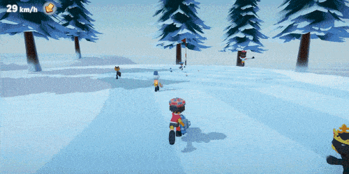 - Freeze Bomb: Fire a block of ice that freezes nearby players for a short time, giving you the perfect chance to take the lead while everyone else is stuck in place. Aim it at a body of water to create a temporary platform.